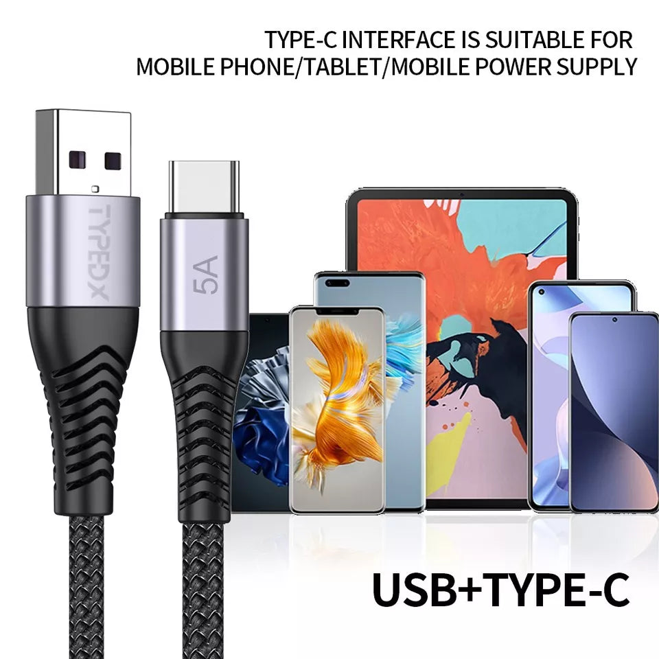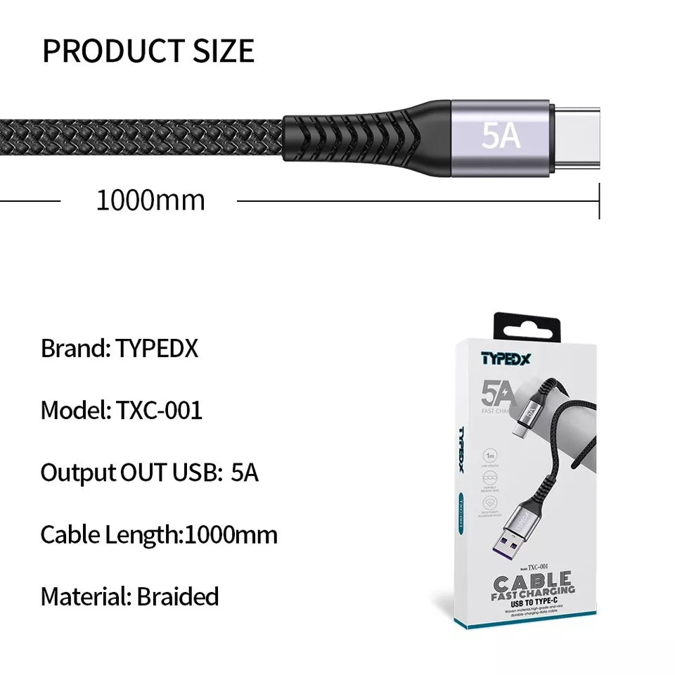 TYPEDX USB to Type-C Cable – 5A, Durable 1M Fast Charging Cord, High-Speed Data Sync for Smartphones, Tablets, Laptops – Tangle-Free, Long-Lasting USB C Cable for Travel, Home, and Office